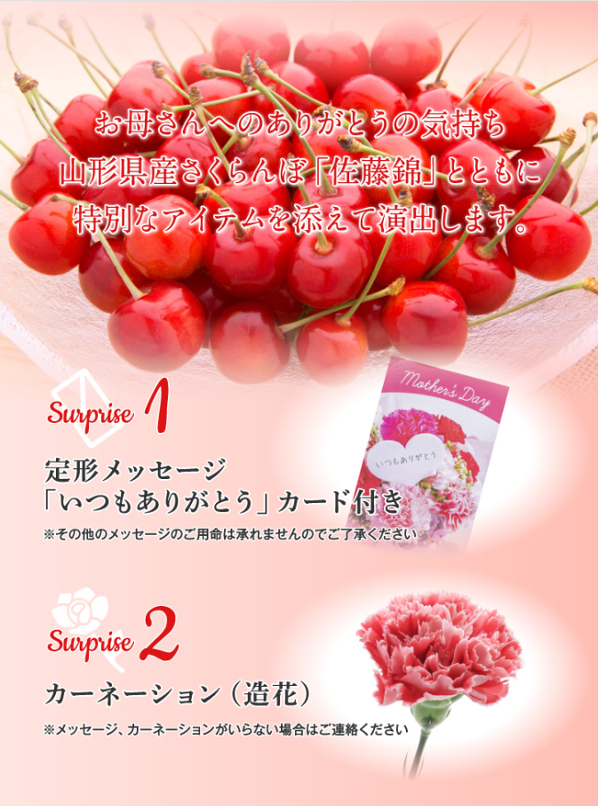 大切なあの方へ、感謝の気持ちを込めて…。宝石のようなさくらんぼ。いつまでもキラキラと輝いて欲しいから。